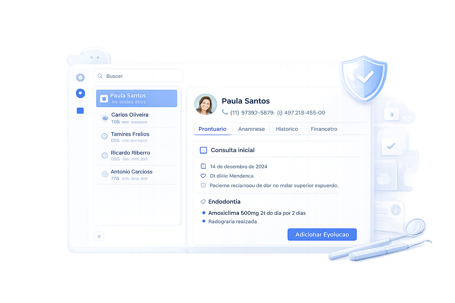 Mais segurança, menos papelada Centralize informações clínicas dos pacientes de forma organizada e segura. Acesso fácil aos dados, sempre que precisar.